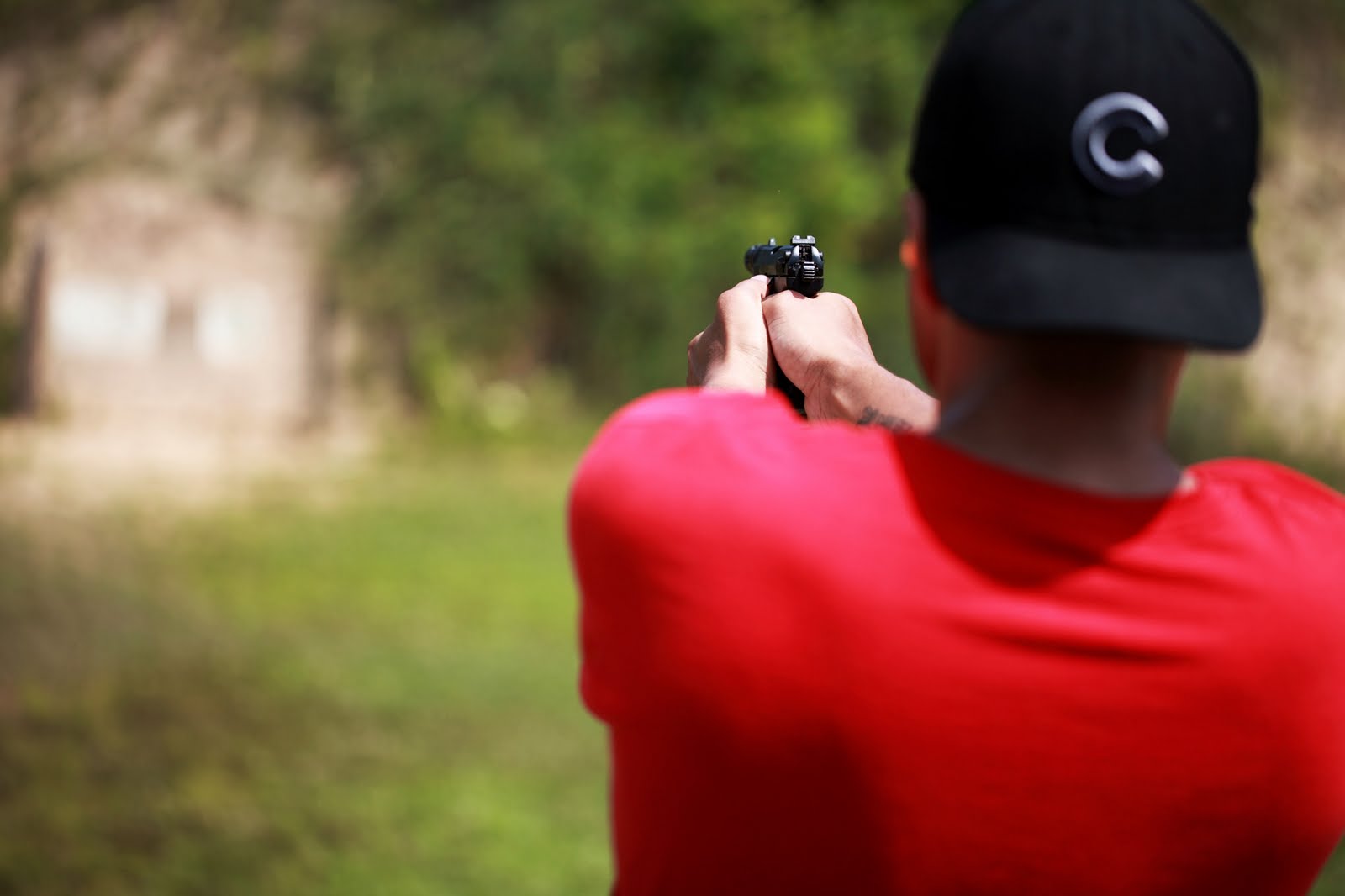 Everybody started to take their turn and I quietly stood in the back of the group takings pics of all the action, hoping it would go unnoticed that I had yet to take my turn. Of course, with James around, I did not fly under the radar like I had hoped! He said, “Christy – you haven’t gone yet! Get up there!” UGH. So here I go… about to take my turn. I figured – okay, why not try it? Everybody says once you shoot a gun you will LOVE it and wonder why you were ever freaked out by the idea.
