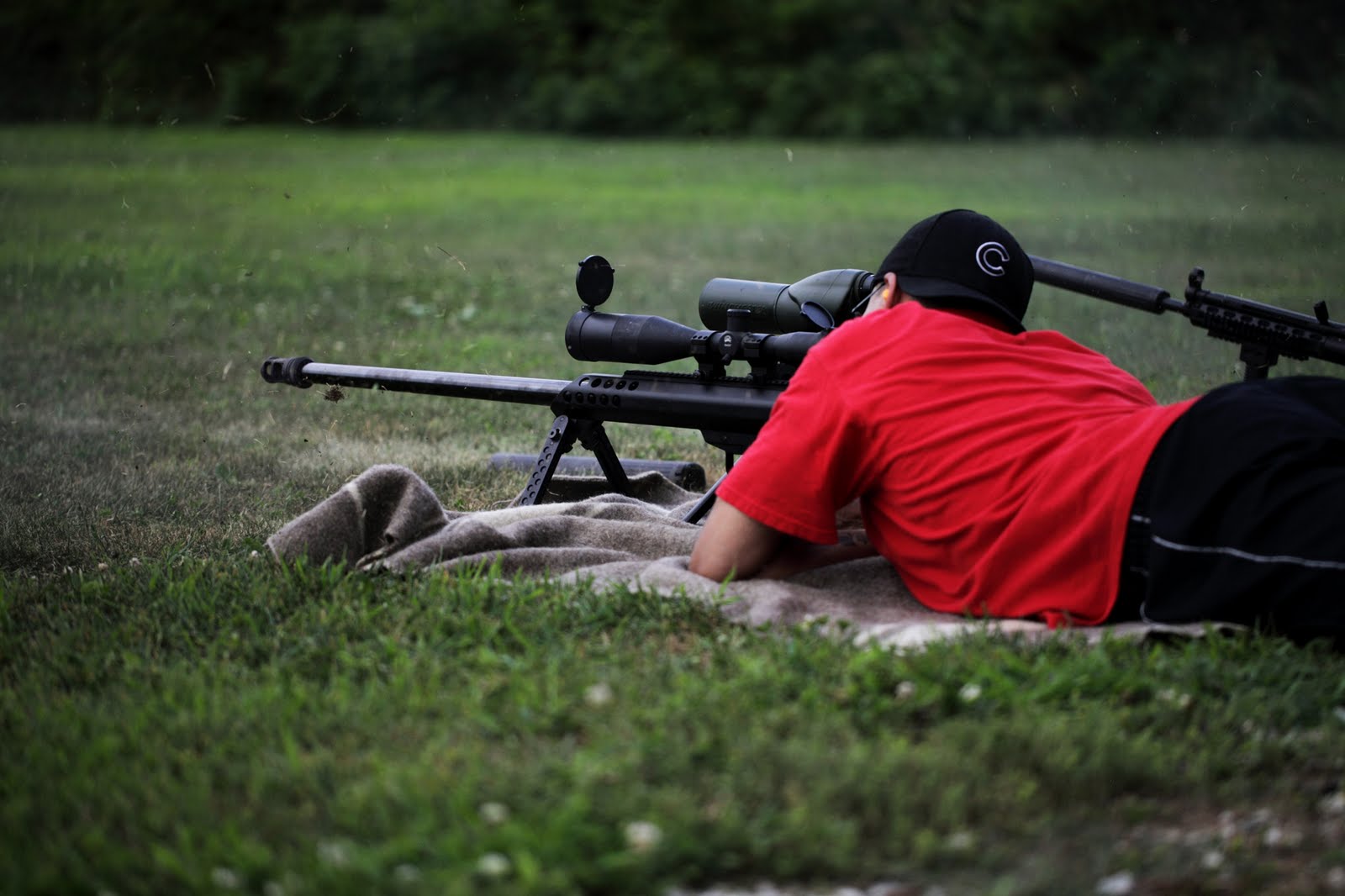 Anyway, we arrived in Indiana very early Saturday morning and after another hour drive out to the range finally made it out just about at the peak heat of the day! It was another scorcher – 90’s or higher… but we managed to stay cool with lots of water and shade from a tent Melissa’s dad brought along (thank goodness!)