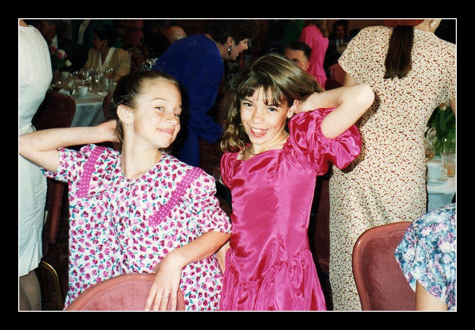 1st is my dear cousin Sara’s wedding in San Francisco. I’m nearly positive she was my first friend in life outside of my siblings. I am just over a year older than her, so I’m pretty sure we became BFF’s at approximately the age of 1 month (her) and 1 year + 4 months (me). (I may have made this up – as I have no idea when we first met – but whenever that was – we were hooked for life… and I know it was at a very young age.) We had numerous plans in life as we grew up in different cities within Wisconsin. First and foremost was our desire to some day live in the same city and join our separate group of friends. (Which, by the way, happened! Success! At the University of WI, Madison for 4 years :)) Other random out-takes in our lives: pretending to be super heroes at our Grandma’s house (“Danger Girls,” i.e. Dan & Ger… true story), throwing fruit as high as we could and attempting to catch it (sounds stupid, but it was hilarious as children), at times laughing so hard we peed ourselves (maybe), and numerous other ridiculous things we came up with throughout the years, along with lots of parallels in our boy dramas. Bottom line here is that we’ve basically grown up together from day one. We’ve always been on each other’s team. And our lives seem to have run the same course (generally), with a one year delay given our age difference… So, it feels normal for me to be married – but for Sara to be getting married?! I just think – I. might. lose. it. seriously. Today at work I imagined things I may write in the card I’m giving her and started to cry. True story. Just imagined what I may say. Didn’t even write it yet… Anyway – I could write about this girl forever. But I’ll end it here (until I post more from San Fran). Lastly, to further prove our awesomeness together – here is a photo of us at our cousin’s wedding at the ripe old ages of 9 & 10. (We obviously think we are the sh*t here… I love it. haha!)