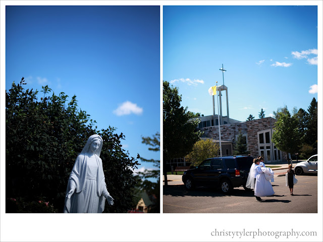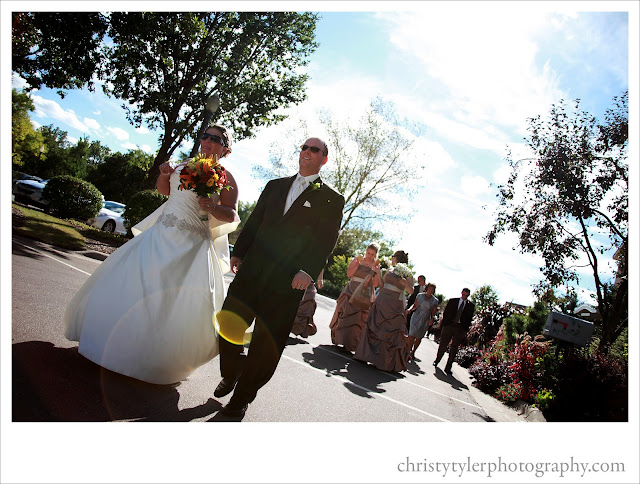 So I thought I should post about their wedding today so that when one of them is incredibly frustrated after their team loses tonight – they can come to this post and remember the happy day that was their wedding – and try not to think of their bitter football rivalry. 🙂