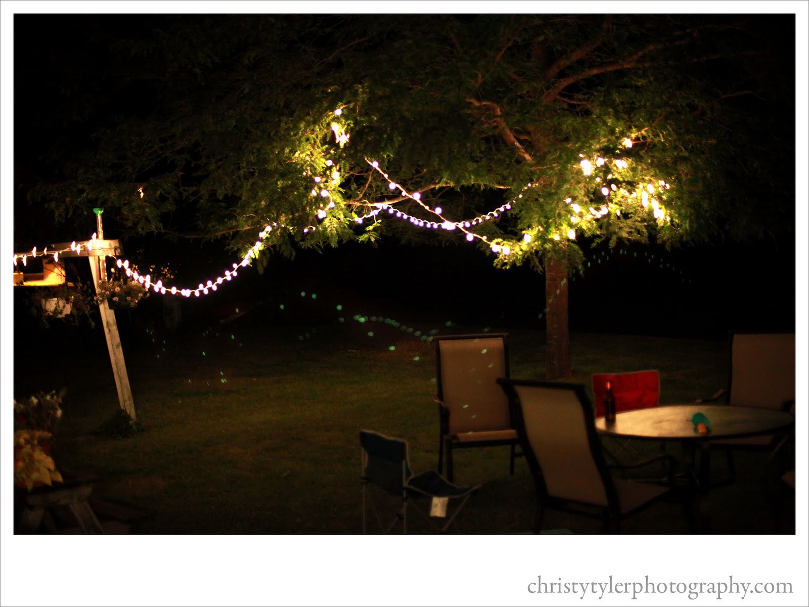 They had the backyard all cute – with Christmas lights strung about and balloons on the table…