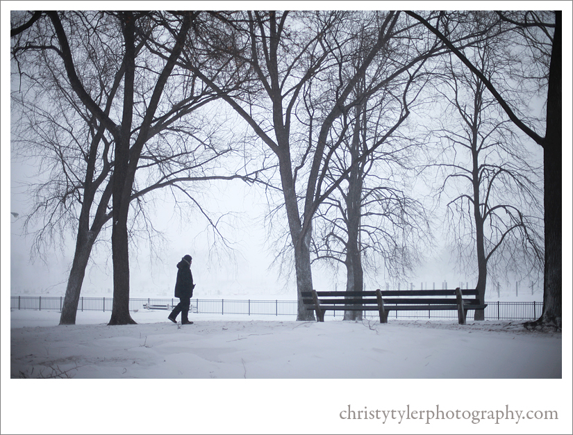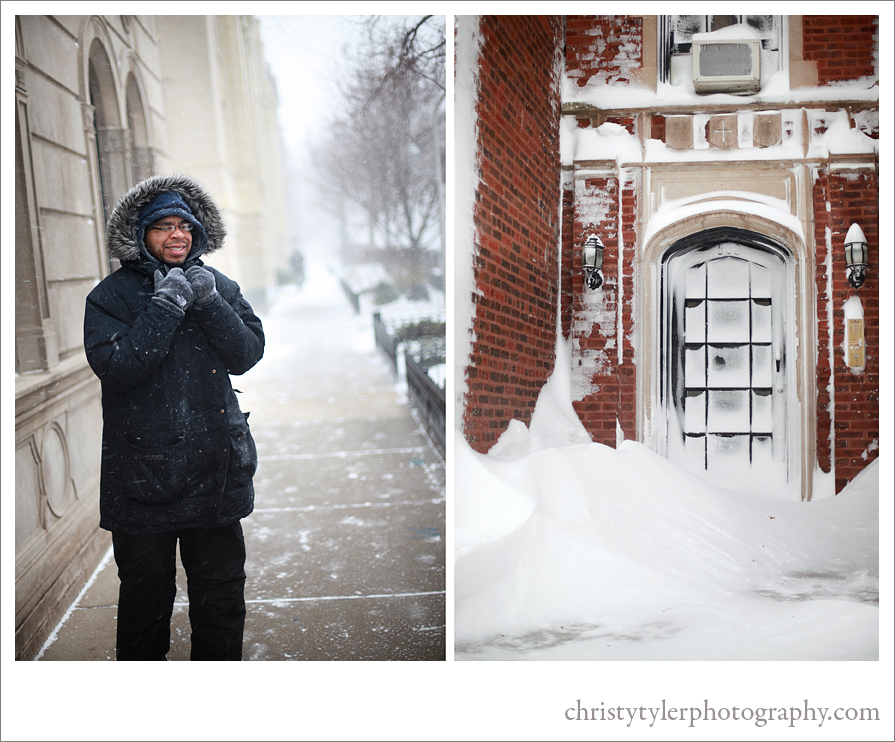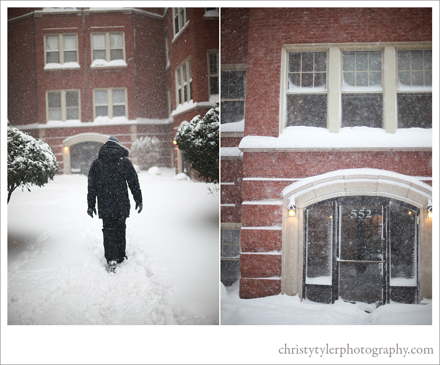 James and I woke up nice and early yesterday to go check out what the blizzard had left us. We wanted to get out and see things before everybody had shoveled and trampled all over the pretty, new snow. It doesn’t look pretty like that for long in Chicago – so we got to it quickly!