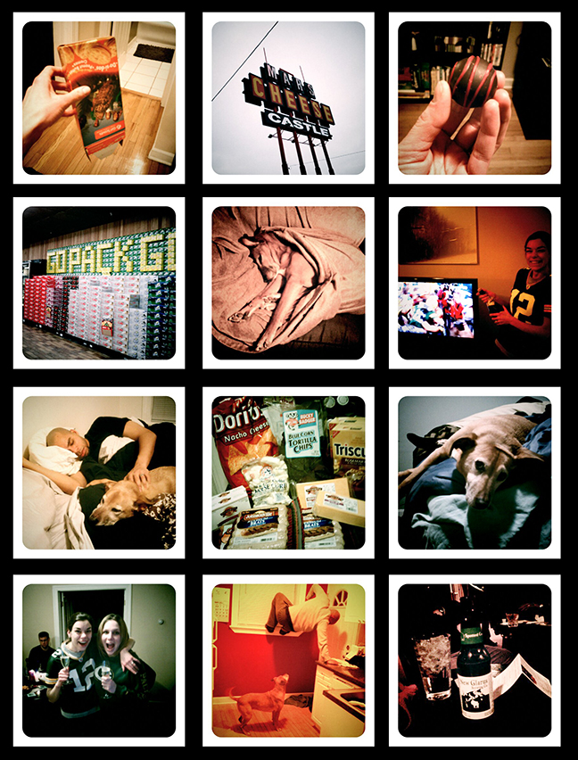 8. Some of the Superbowl spread at my place… cheese, brats, chips, more cheese, cheese… and oh yes cheese. (I made homemade donuts at halftime too! Holy cow did those things fly off the plate. I guess my friends liked them. :))